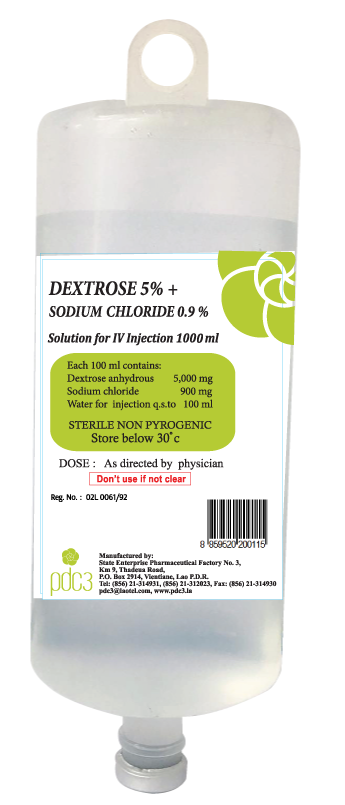 ຫຼັງການຜ່າຕັດ - ໃຊ້ສຳລັບຄົນເຈັບທີ່ຂາດນ້ຳ ແລະ ທາດນ້ຳຕານໃນຮ່າງກາຍ - Used for energy and mineral salts replacement before and after surgery - Used for patients who are dehydration and hypoglycemia | ວິທີການນໍາໃຊ້ / Dosage - ໃຊ້ສັກສົ່ງເຂົ້າເສັ້ນເລືອດດຳ ຕາມຄຳແນະນຳຂອງທ່ານໝໍເທົ່ານັ້ນ. |