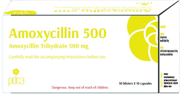 congestion, running nose, headache and fever ຊື່ການຄ້າ/ Product Name: AMOXYCILLIN ສ່ວນປະກອບ/ Composition Each 100mg contains: Amoxycillin Trihydrate 500mg ຂະໜາດ Size: 500mg ການບັນຈຸ / Packaging: 10 caps x 50 bl x 24 box/carton