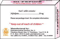 ![]() ![]() ![]() | ຊື່ການຄ້າ/ Product Name: DI-FEPIN ສ່ວນປະກອບ/ Composition ຂະໜາດ Size: 20mg ການບັນຈຸ / Packaging: 10 tabs x 10 BL x 320 box/carton