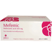 ຊື່ການຄ້າ/ Product Name: MEFEMIC ສ່ວນປະກອບ/ Composition Each 100mg contains: Mefenamic acid 500mg ຂະໜາດ Size: 500mg ການບັນຈຸ / Packaging: 4 tabs x 25 BL x 64 box/carton