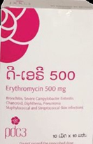![]() | ຊື່ການຄ້າ/ Product Name: DI-ERY ສ່ວນປະກອບ/ Composition Each 100mg contains: Erythromycin 500mg ຂະໜາດ Size: 500mg ການບັນຈຸ / Packaging: 10 tabs x 10 BL x 96 box/carton